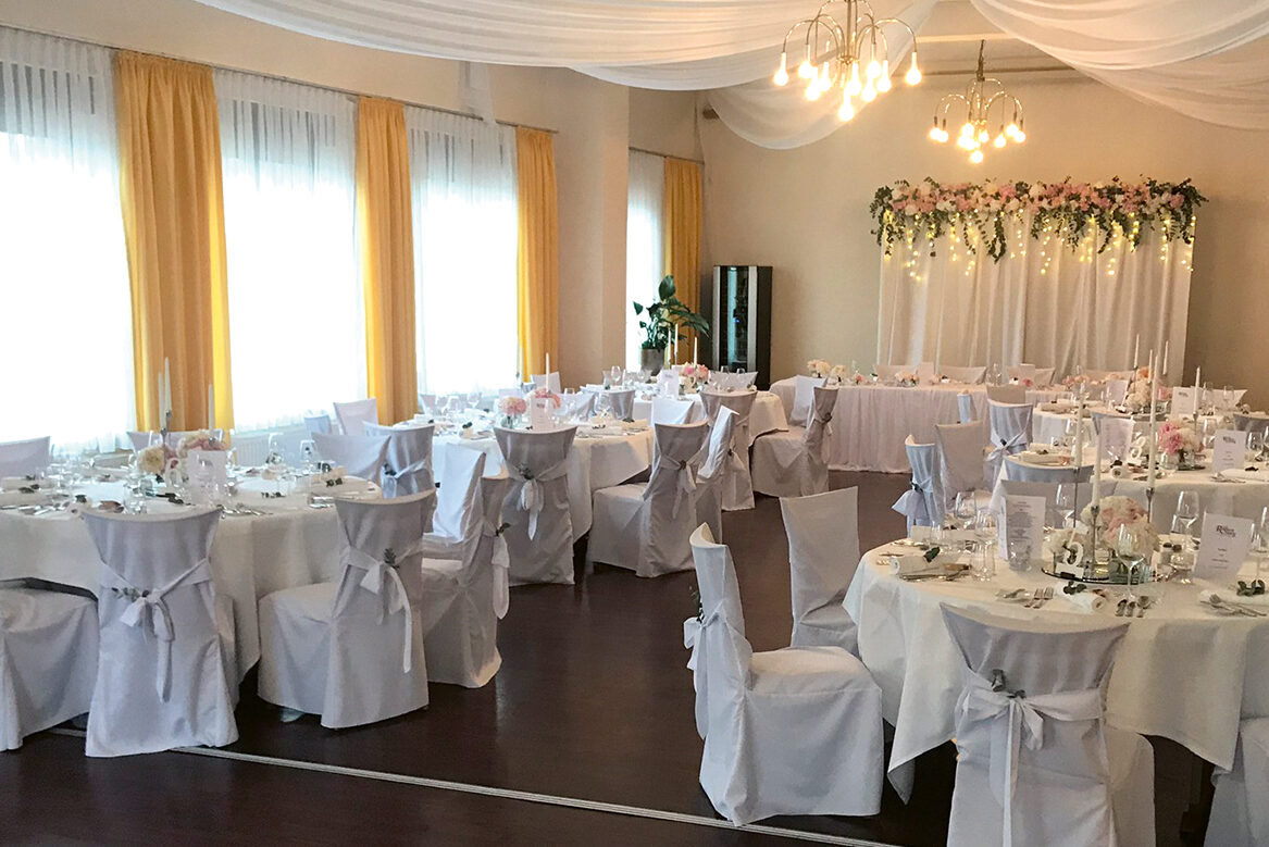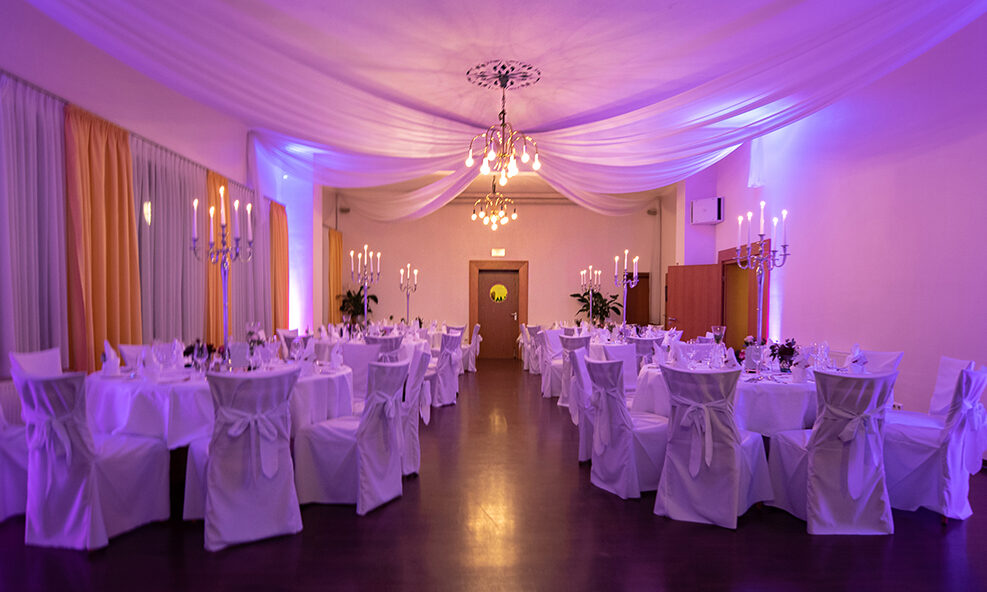 In Abstimmung mit dem jeweiligen Veranstalter dekorieren wir unseren großen Saal („Roter Saal“) für den vorgesehenen Veranstaltungszweck (bis ca. 120 Personen).