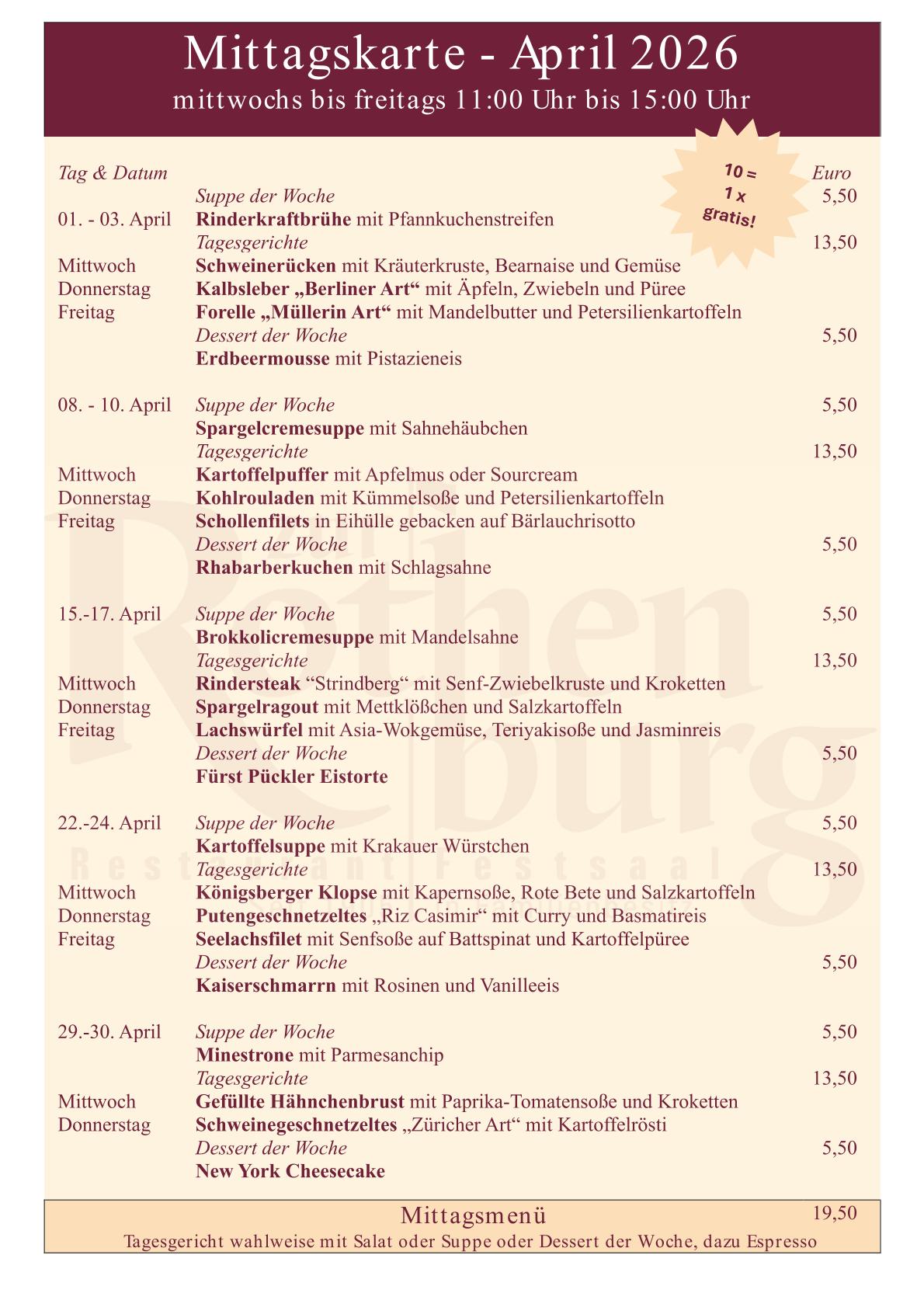 Mittagskarte April 2026Zur Rothenburg - Restaurant & Festsaal